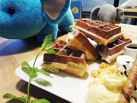 鬆餅: 搭配鬆餅的鮮奶油裡頭加入了杏桃酒,讓人吃起來不會膩,