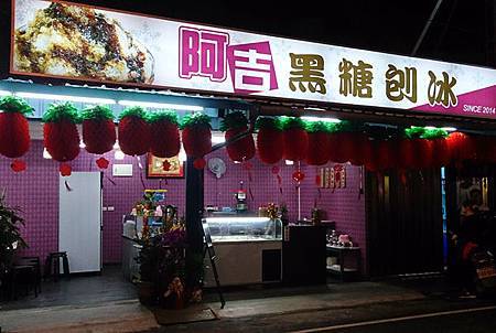 在樹林彭厝市場的尾巴,有一個大大醒目的招牌,遠遠的就看見他聳立在各招牌海當中-阿吉黑糖刨冰。
