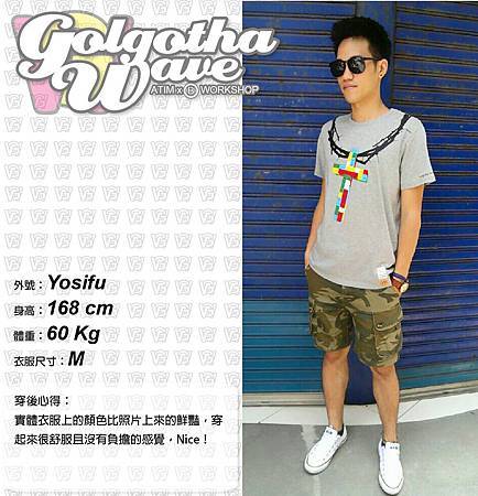Golgotha Wave 嚴選30織細緻纖維的天然純棉布料為底,打造出最柔軟舒適的衣著感,與知名牛仔褲服飾製作廠商合作,特殊剪裁打版,是外面找不到的版型,因為我們堅持給穿衣服的您更有型。不刺癢、不變形、不起毛球,進口無毒印刷膠料,壽命長,洗滌後不沾黏不易脫落。在領圍支撐布條加持下,使領口不易變形鬆垮,並且沒有相同的花色,也是本服飾一個小巧思,真皮標籤高質感不暈染。