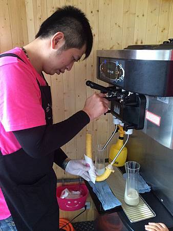 噹噹~就是這支外表由玉米粉所製作的餅乾,裡面灌進了店家特製的霜淇淋,就是我們戀愛冰心霜淇淋啦!