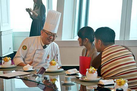 這次的試吃會由林炳章主廚親自為我們做詳細的解說,主廚非常地有親和力,解說的過程中,還不時地提醒我們記得趕快用餐!主廚認為頂鮮餐廳最大的兩個特色,一是大量採用台灣本土新鮮蔬果與海鮮食材,在食材的選用上非常地講究,講求絕對地新鮮!二則是將台灣經典小吃搬上國際的舞台,讓全世界都能看見!