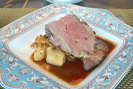 特製套餐主菜「現切特級Roast Beef」,選用肉質鮮嫩、油花均勻的上等美國肋眼,先去油去筋再放入佐料及香料,最後淋上些許白蘭地和白酒,總醃製過程需耗費兩天的時間!主廚長刀切下的一刻肉香四處飄溢,再融合肉汁的紅酒香氣,每一口都是滿滿的享受~