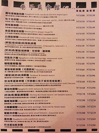 來到了永安市場這,找到一間名為巷子美食館,老闆娘來自於福建,因為喜歡所以開了這家店,老闆娘說醬汁都是自行調配,像青醬就是包含了堅果,銀魚,九層塔,橄欖油等等,紅醬除了一般番茄外也有加入部分的聖女番茄喔!食材方面也是幾乎都採用新鮮食材,不含化學添加物。