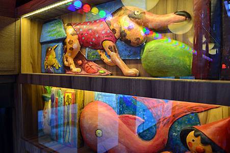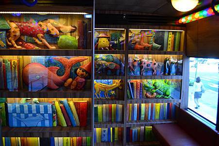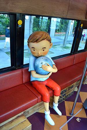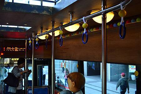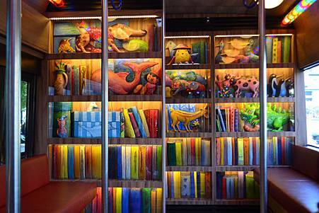 上了公車後就會看到五彩繽紛的動物、人偶,還有一格一格像書櫃的擺設!!