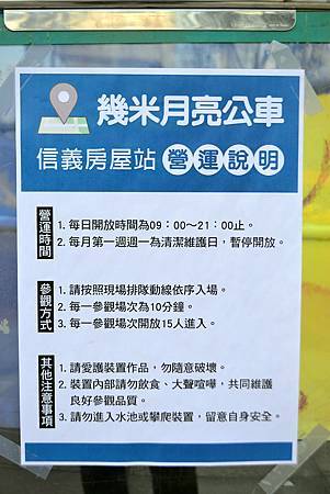 為了要維持月亮公車的整潔,請各位朋友務必要注意參觀的開放時間與注意事項唷!