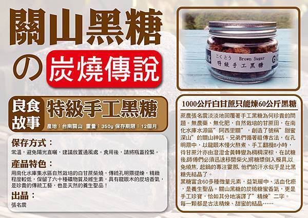 關山黑糖的炭燒糖蜜香氣,更是手工珍寶,恰如其分地演譯了”精煉”二字。