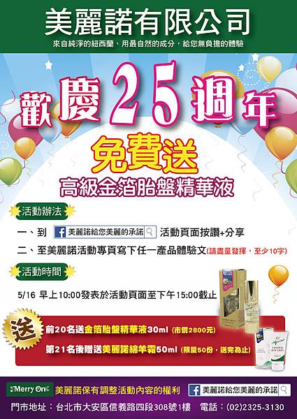 大家看過來,慶祝5月20日 美麗諾給您美麗的承諾 25週年紀念