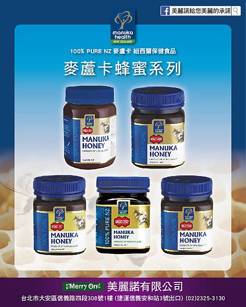 ◆麥蘆卡蜂蜜僅產在無污染的紐西蘭,是蜜蜂從麥蘆卡樹(Leptospermum Scoparium)所採收。麥蘆卡是一種小型茶樹,叢生於山坡地,在炎熱的夏天,盛開的花朵引得成群的蜜蜂來採集蜜,釀造出麥蘆卡蜂蜜,是為紐西蘭國寶級蜂蜜,質滑芳甘,濃醇蜜香,馥郁芬芳耐人尋味,且具有其他蜂蜜所缺乏的活性成份---MGO,是蜜中極品,吸引全球賞蜜人士與保健養生族群的青睞。