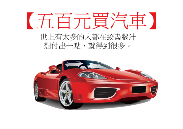 師:你知道五百塊買不到汽車!可是世上有太多的人都在絞盡腦汁,想付出一點,就得到很多。