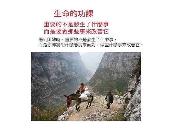當你在冬天時候就放棄,你就會錯過你生命春天的盼望、夏天的美麗、秋天的收成。 不要讓一個季節的痛苦毀掉其他季節的喜樂。不要因為一個痛苦的季節就對人生下結論, 持守忍耐度過這段艱難,美好的日子將在不久之後來到。