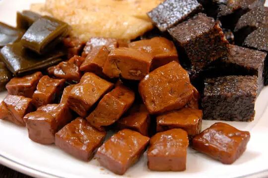 大溪豆乾是桃園縣大溪鎮的特產,特色是烏豆乾,外皮厚而黑,有韌性。據說大溪豆乾是用天然泉水製作的,有自己的獨門醬料,吃起來很香甜嫩Q,有濃郁的黃豆香味。
