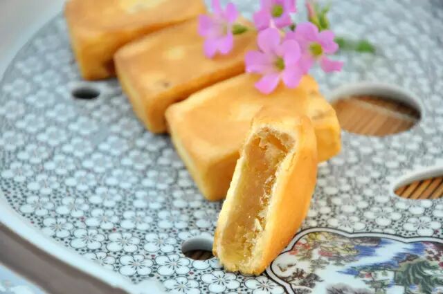 基隆特色伴手禮。用綠豆仁研磨成粉而成,不甜不膩。綠豆沙餅保存期限只有七天,用烤箱加熱後再吃,內餡會變得軟綿。再配上一杯檸檬綠茶,非常夠味。