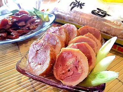 鴨賞是宜蘭四寶之一,將洗扒乾淨的鴨懸掛在特製的爐中,用甘蔗點火煙燻烤熟。