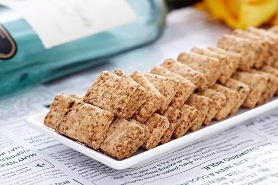 方塊酥是嘉義的代表特產,一層一層慢火烘焙出的酥脆口感,口味有咸有甜,有咸甜奶油、海苔、咖喱、芝麻、香蔥、杏仁、雞蛋、抹茶、吉士、茶梅等十餘種,脆脆香香的,搭配一杯烏龍茶或者咖啡,可以做不錯的下午茶。