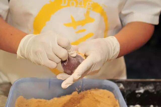 用研磨最細的綠豆粉和滷肉做餡,加上紅蔥頭提味,一口咬下去,甜甜的綠豆沙混合香鹹的滷肉餡,口感很有層次,而且不會膩膩的,吃貨們一定要嘗試下。